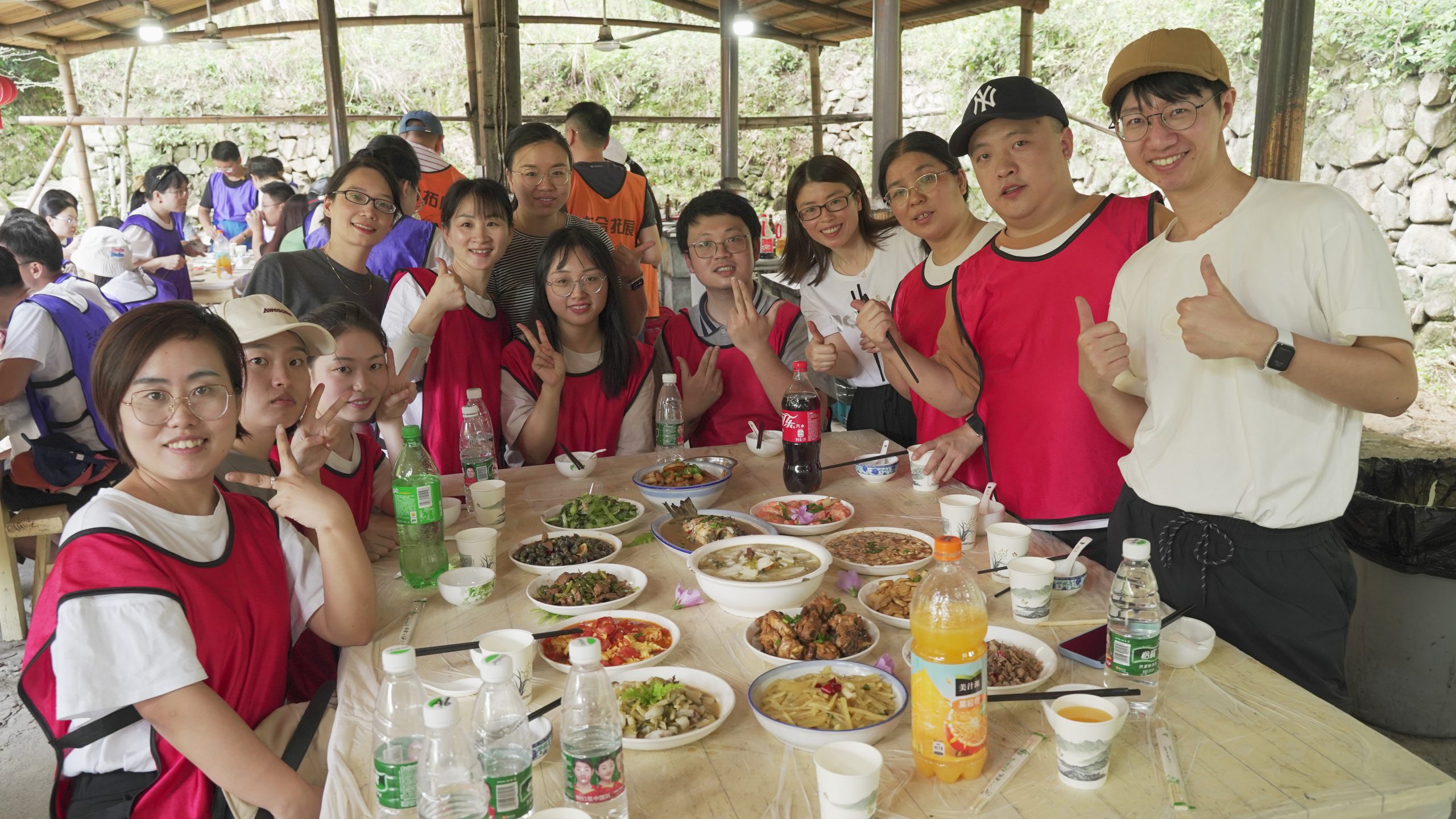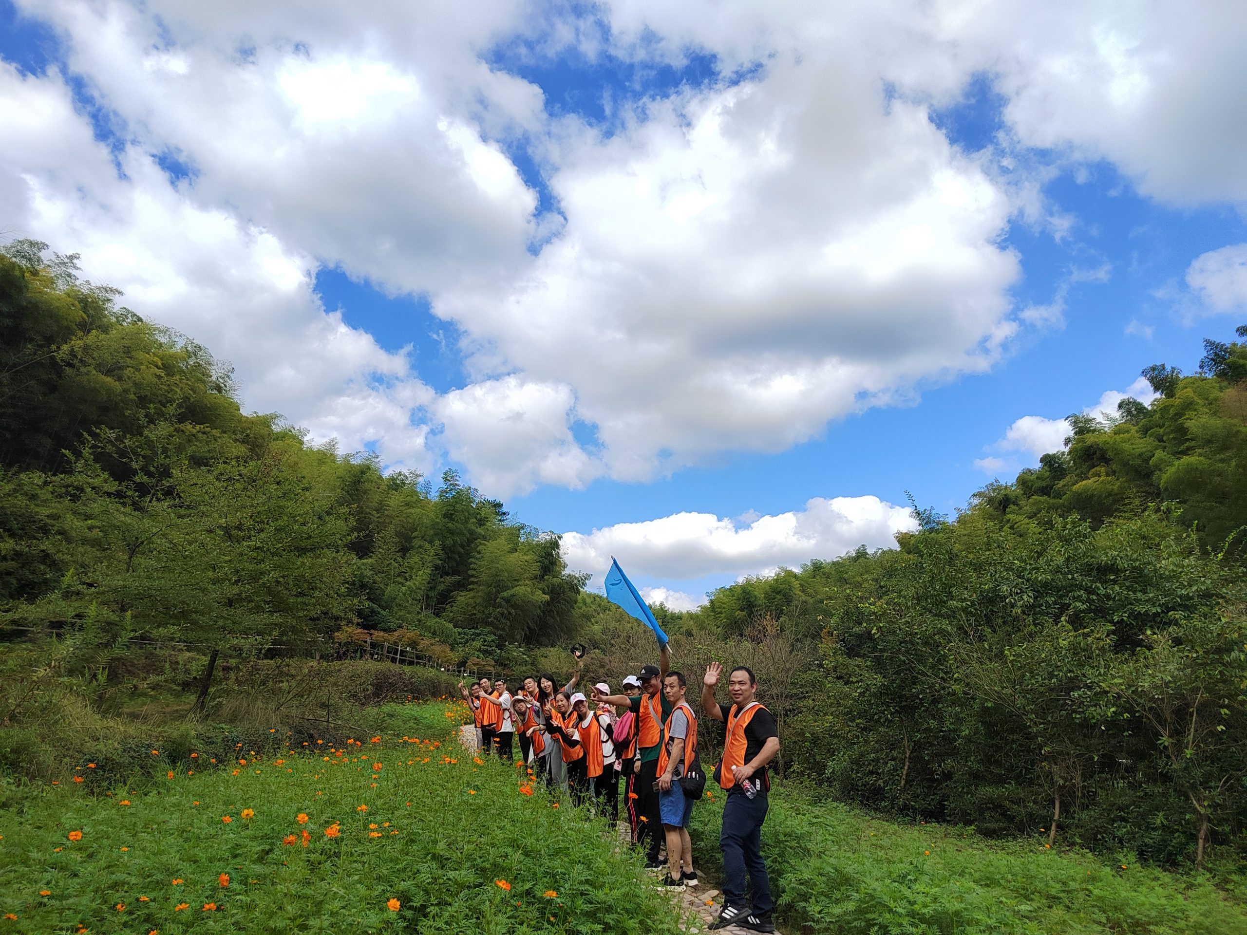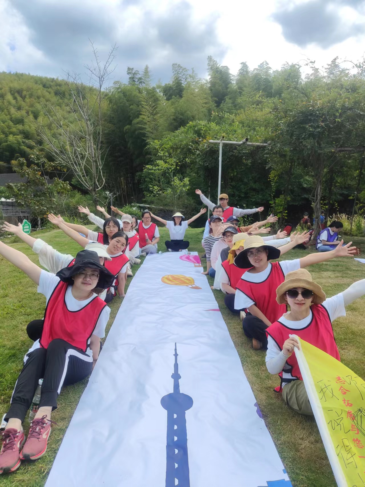為給忙碌的工作生活增添幾分明媚的色彩,2022國貿秋季團建如期而至。9月24-25日,300余位國貿員工分兩批次,踏上綠意森森的浙東大竹海,走過歲月沉淀的古道花海,享受慢時光里的美好。 林間陰涼,小伙伴們沿竹林間蜿蜒曲折的小道行走,清風徐徐吹動竹葉,泛起連綿起伏的波濤,拾階而上,登高看竹林連綿成海,滿目翠綠,不以速度取勝,全員可盡情享受山間美好。在團隊成員的互相鼓勵下,無論是陡峭的七百多級木質臺階還是狹窄的石子步道,都被大家的團結協作攻克,悠長的古道一路上都留下了彼此的歡聲笑語。 團隊間的pk自然少不了,大家群策群力確定了隊伍的隊名、口號、隊旗,潑墨成畫,一幅幅充滿希冀圖案躍然旗上;分貝爆表,一聲聲響亮的口號不絕于耳,團隊較量正式拉開帷幕。“極速60秒”和“保護VIP”兩個有趣的小游戲調動著每位小伙伴的積極性,智力和體力的雙重考驗,只有配合默契、互相協作才能在規定時間內獲得成功。游戲中遇到的困難,大家齊心協力克服,增加團隊之間協作的能力,也增進大家之間的感情,使得團隊更有粘合力。 俗話說“自己動手,豐衣足食”,這一次大伙親自動手,烹制一頓別開生面的“土灶”農家樂。十八般廚房武藝開練現場,裊裊炊煙,飯香四溢,耳邊還有叮叮當當的鍋鏟碰撞聲。大家各自分工,洗菜、生火、掌勺,一副其樂融融的景象。平時深藏不露,一上臺各個都是大廚,在大家看似忙亂但有條不紊的配合以及各路大廚各顯身手,豐盛的午餐沒一會兒就出爐了~看著“色香味形”俱全的一桌菜,更是讓人忍不住點贊! 下午的重頭戲便是繪制納斯卡巨畫,大家分組領取顏料、筆刷等物料,共同完成挑戰。在共繪巨作的過程中,小伙伴們分工合作,充分協調,從無到有,從雛形到重彩,所有人都貢獻了自己的力量,在一筆一劃的勾勒之間享受團隊協作帶來的喜悅和快樂。 低頭有堅定的腳步,抬頭有清晰的遠方,此次團建不僅增進了員工間的情誼,更鍛煉了大家的意志。追逐夢想,未來可期,讓我們期待下一次再見!