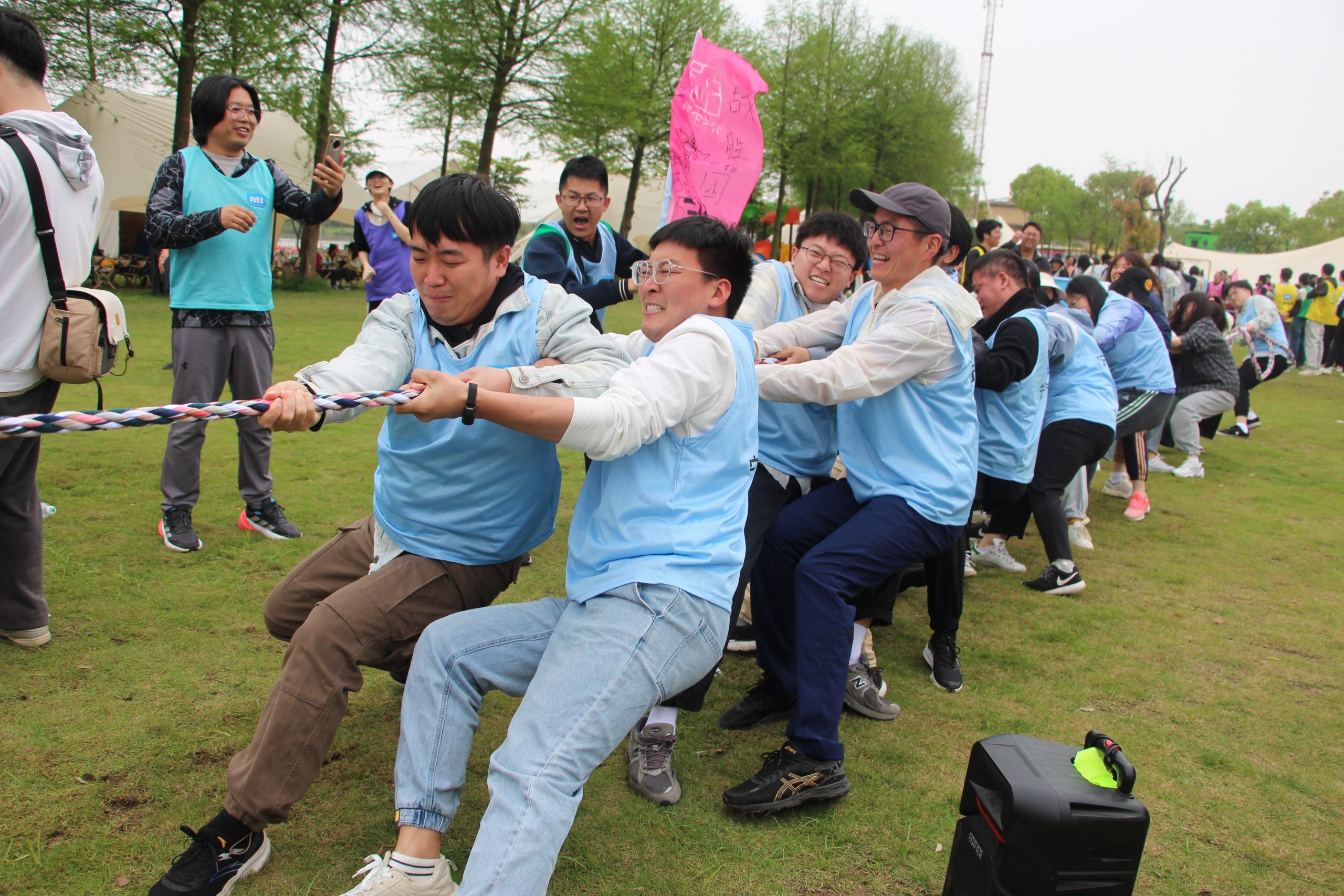 微風和煦,萬物新生,空氣中滿是春天的味道。在這個活力滿滿的時節,當然要和小伙伴們來一場踏青之約。4月27日,國貿事業部2024團建在北侖梅山灣如約而至,332名小伙伴歡聚一堂,讓我們不負春光,乘勢向前! 美好的一天由熱身運動拉開序幕,大家肩靠肩,手拉手,旁邊無論是熟悉還是陌生的伙伴,都緊密地倚靠在一起,拉近了彼此的距。接著,全員被分為16個小組,在組長的帶領下,想組名、喊口號、分隊服、拍合照,場面瞬間熱鬧起來。 一根繩,一條心,力量的對決,團隊的榮耀。隨著教練的一聲哨響,四支鼓足了勁,漲紅了臉,抓緊繩子,全力以赴。一旁的觀眾加油吶喊,聲嘶力竭,個個沉浸其中,炒熱了氣氛。這不僅是力量的比拼,更是對團隊協作能力的極致考驗。從排兵布局到拼盡全力,從加油鼓勁到祝賀勝利,每一個瞬間都展現了萌恒人的團結與友誼,激情與風采。 170名伙伴圍成一圈,手拉紅繩,目標一致。用球擊鼓,能顛幾下,能顛多久,離不開每一名伙伴的配合與努力。經過團隊協作后敲響的鼓聲,鏗鏘有力,催人向上,一種心齊志堅的豪邁感噴涌而出,同心同頻,共攀高峰。8分鐘顛球223下,讓人不禁感慨團隊的力量果然無限大。 若說百人戰鼓考驗的是大團隊的配合與默契,芬蘭撞柱試煉的則是小團隊的策略和執行。精準的判斷、冷靜的投擲、互相的配合、良好的溝通,缺一不可。“50分,完成!”成功的歡呼不斷響起,彼此的信任逐漸加深,直到游戲結束,大家都意猶未盡。 人間煙火味,最撫凡人心。美味的燒烤刺激著小伙伴們的味蕾,各類新鮮食材,讓人垂涎欲滴。饑腸轆轆的胃得到了極大的滿足,大家互相分享,大快朵頤。稍后的廚藝比拼更是點燃了現場火熱的氣氛。每組派代表前來,比賽烤雞翅的手藝。火候拿捏,外焦里嫩,萌恒人果然有兩把刷子! 午餐結束,簡單休整后,一行人浩浩蕩蕩地開始了全長6.6公里的環湖徒步。一路欣賞美麗的風景,呼吸清新的空氣,近距離感受自然的綠意和美好,汗水與歡笑交織在一起。路途中,各隊集思廣益,留下了隊形獨特、笑容燦爛的團隊合照,定格瞬間的美好,這段寶貴的集體回憶也將被我們好好珍藏! 快樂的時光總是短暫的,2024春日團建就此畫上了一個完美的句號。大家在忙碌的工作之余,放松自我,親近自然,也在游戲與美食中,增進了彼此的友誼與默契。愿我們在未來的日子里,繼續并肩同行,大步向前。期待我們的下一次出發!