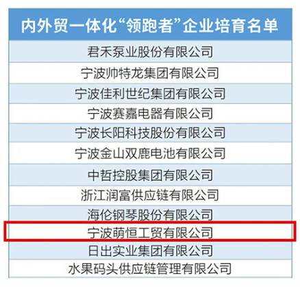 萌恒榮登浙江省第七批內(nèi)外貿(mào)一體化“領(lǐng)跑者”企業(yè)培育名單