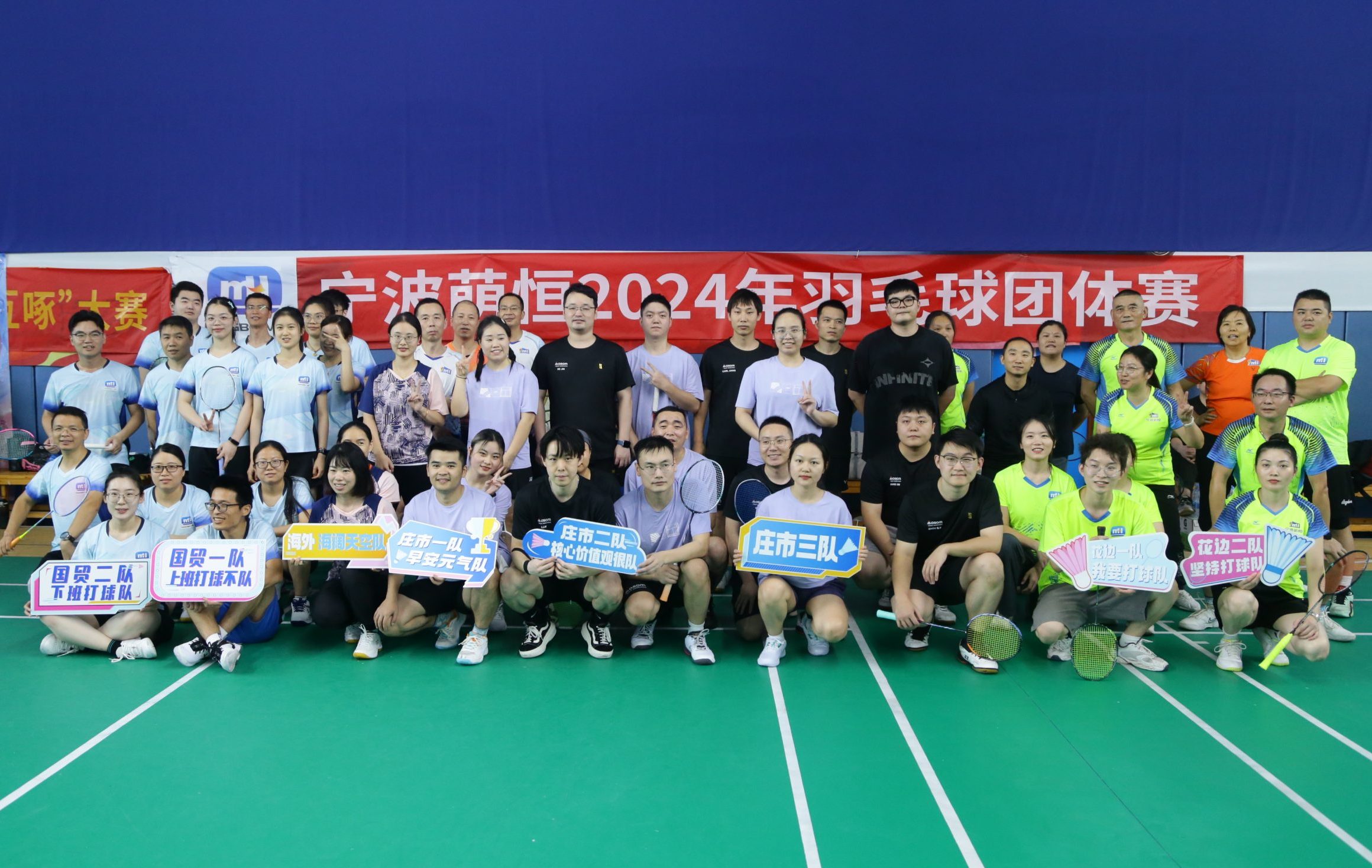 下午一點(diǎn),萌恒羽毛球團(tuán)體賽在寧波長勝球館拉開帷幕,比賽以“文明、友誼、拼搏、向上”為宗旨,共有來自莊市片區(qū)、洪塘片區(qū)及長豐片區(qū)的8支隊(duì)伍、54名運(yùn)動(dòng)員參加。公司領(lǐng)導(dǎo)陳總、徐總也換上運(yùn)動(dòng)裝備,加入戰(zhàn)隊(duì),與伙伴們一起并肩作戰(zhàn)。