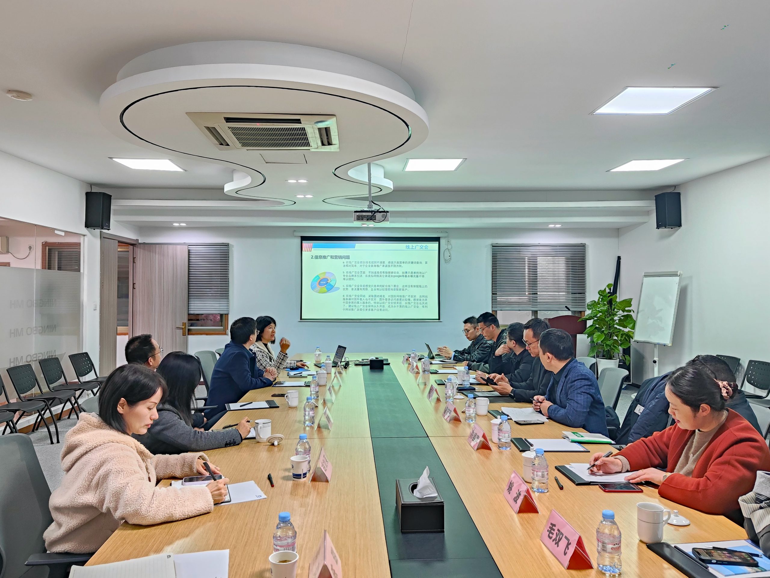 12月4日下午,中國對外貿易中心副主任蘇斌一行就線上廣交會平臺發展情況前來萌恒走訪調研,國貿事業部總經理陳昊及相關負責人熱情接待,并帶領蘇主任一行參觀了公司的樣品間,令其對萌恒有了直觀、真切的了解。 隨后座談會上,相關負責人介紹了公司整體運營情況。2020年以來,在全球新冠肺炎疫情持續蔓延、國際貿易受到嚴重沖擊的形勢下,廣交會因時而變推出線上展,至今已連續舉辦八屆。我司與會人員就公司在線上廣交會近幾年來的成交情況、平臺操作問題、信息推廣和營銷問題做了報告分析。針對我司提出的問題,中國對外貿易中心相關領導一一予以解答。 廣交會是中國對外開放的關鍵窗口和國際貿易合作的重要平臺,線上廣交會作為一種新型商務交流方式,具有?靈活機動?、?無時差影響?、展示量大?、降低成本?等優勢,通過互聯網平臺展示產品、與客戶溝通,促進了對外貿易和數字經濟的深度融合。 蘇主任表示廣交會是中國歷史最長、層次最高、規模最大、商品種類最全、到會采購商最多且分布國別地區最廣、成交效果最好的綜合性國際貿易盛會。線上廣交會將成為365天永不落幕的廣交會,搭建為客戶和中國優質供應商溝通對接的便利平臺,持續提升參展企業質量,拓展線上平臺功能,優化展會服務,增強參展客商的體驗感和獲得感。陳總也表示萌恒會接續奮斗,將線上廣交會效應最大化、最優化,同時全力支持、緊密配合政府部門,努力為區域經濟高質量發展貢獻自己的一份力!