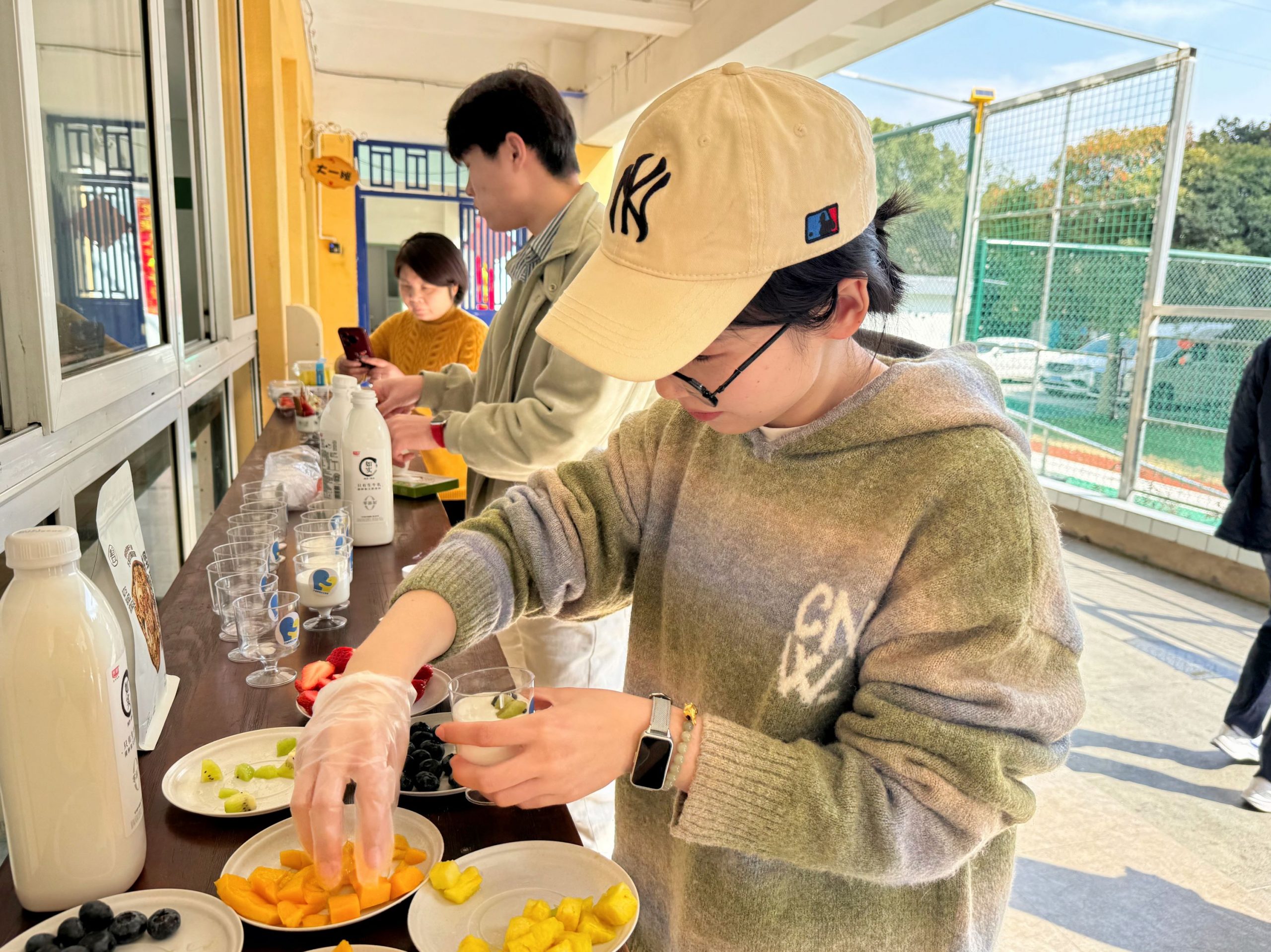 而在福利院的活動吧臺上,一場溫馨的手工制作正在進行。志愿者們用酸奶和各類新鮮水果,精心制作成一個個美味的酸奶杯,空氣中彌漫著清甜的果香。當孩子們接過酸奶杯,那一張張純真的小臉上瞬間洋溢出燦爛的笑容,如春日暖陽照亮了整個福利院,也溫暖了每一位志愿者的心。這場跨越言語的互動,讓簡單的酸奶杯化作愛的紐帶,將善意深深烙進每個人的心底。