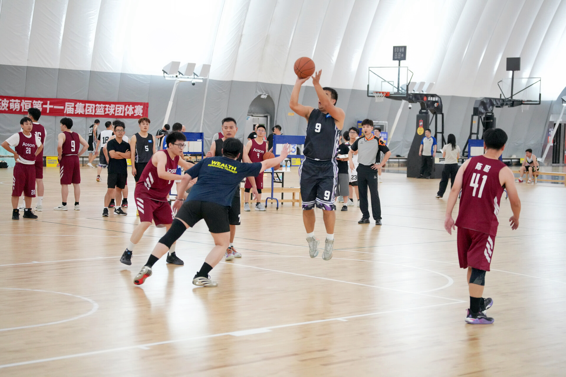 當夜幕降臨云甬籃球公園,燈光為熱愛聚焦,歡呼為拼搏沸騰。9 月 22 日,萌恒第11屆集團籃球團體賽在此熱血開賽,來自長豐片區、莊市片區、洪塘片區的 7 支隊伍齊聚賽場,用汗水與默契譜寫了一曲屬于萌恒人的籃球篇章。 本次賽事采用“小組賽+交叉淘汰賽+冠亞季軍賽”三階段賽制,7支隊伍通過抽簽確定分組。A組為莊市二隊“一球成名天下知隊”、莊市三隊“今晚打老虎隊”、洪塘二隊“勇闖天涯隊”、長豐二隊“工貿養生球隊”;B組為莊市一隊“健康平安才是福隊”、洪塘一隊“一起嗨皮隊”、長豐一隊“小帥大聯盟隊”。各組隊伍皆帶著片區期待,望能在3V3賽場上嶄露鋒芒。 13場3V3對決場場精彩,彰顯團隊合作力量。小組賽中,隊員們快速適應節奏,后衛精準傳球、前鋒積極跑位、中鋒強勢卡位,攻防間默契配合,落后時及時溝通調整,替補隊員上場即融入,最終各組前兩名順利晉級。交叉淘汰賽競爭升級,緊湊節奏讓團隊協作更顯關鍵。隊員們專注連續傳球與協同防守,憑借彼此信任穩住局勢,成功突圍隊伍皆靠緊密配合鎖定晉級資格。