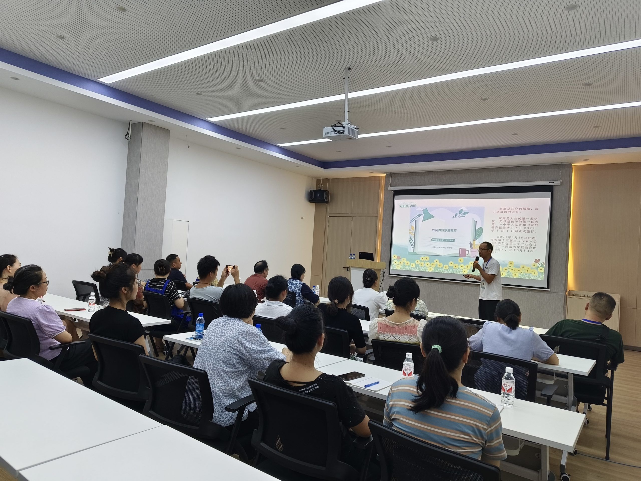 為幫助員工更好地開展家庭教育,解決員工的后顧之憂,7月22日,家庭教育指導服務“向陽花”行動走進湖南萌恒,由國家二級心理咨詢師、繪畫心理分析與療愈師、家庭教育指導師譚勇健為大家帶來《做一個更懂孩子的家長》主題講座。
